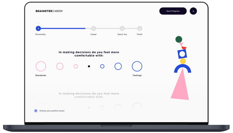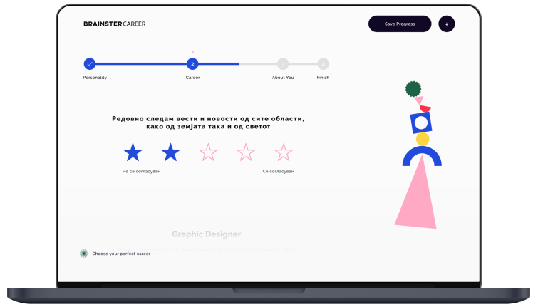 The second set of questions will help you get a recommendation for digital skills that would suit you according to your affinities and personal characteristics. According to the answers to 30 questions, you will get the most suitable proposal for the most sought after and current professions in the digital world.This set of questions was developed by the Brainster team based on our experience and the determined characteristics and affinities most suitable for learning certain skills in selecting students in over 5000 interviews and 4000 students in different types of training and a number of successful career stories in IT. and the digital sphere. The results for this part of the quiz are just our recommendation which career paths in digital skills you should consider when choosing your future career and have no scientific-methodological basis.